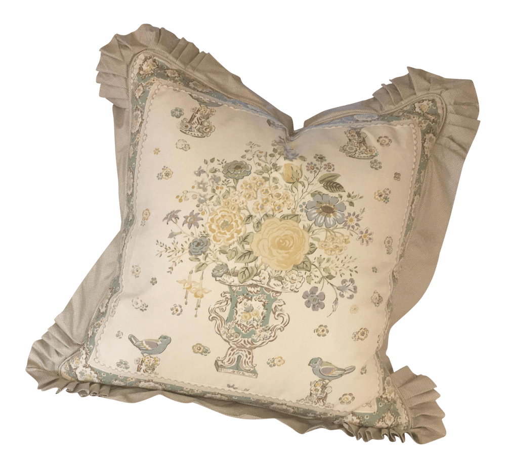 G P & J Baker Traditional Ruffle Floral Print Designer Pillow With 90/10 Down Insert