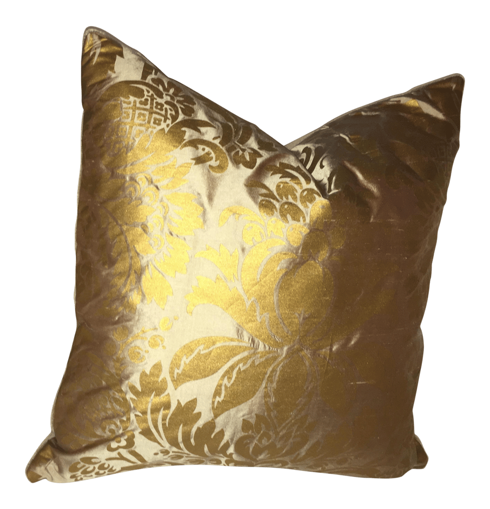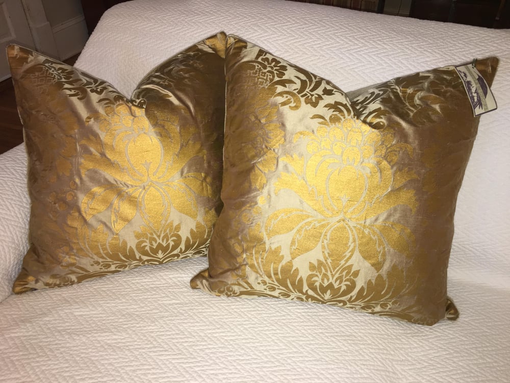 Scalamandre Baranzelli silk pillow. Front (silk) side is lined and reverse is by Clarence House in coordinating mohair. Hidden zipper. Each pillow includes 90/10 down form.